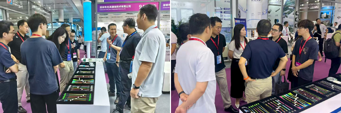 展会期间,吴通展位前人头攒动,来自东南亚、欧洲、中东及国内设备商龙头企业及工程集成商等客户纷至沓来,重点咨询隐形光缆的技术参数与应用案例。